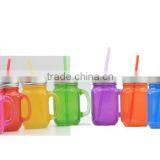 Color Glass Mason Jars With Colour Lid and Straw