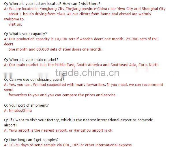 With advanced technology and the imported producing lines, and experienced workers, Kent supply the doors with high and stable quality.