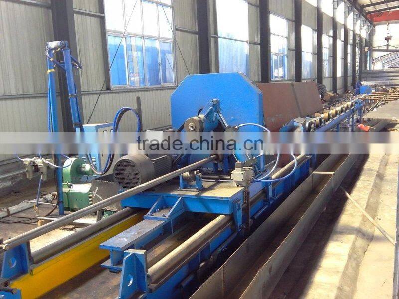 Computer flying sawing machine is a key unit in the welded pipe production line. Its function is automatically precision size and cut the pipes in various shape at a highly toward speed. Due to adapting the rapid and high precision controlling system and mechanical system, as well as its good sizing synchronous property and reliable mechanical transmission, this machine has the obviously good fast performance and high precision characteristic.