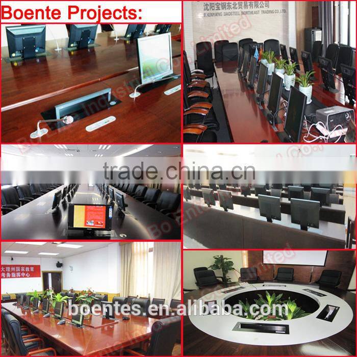 LCD Monitor Lift is widely used on conference system, like video conference system, tv conference system, financial analyzing system, advanced office system, lecture and training room with conference table& computer desk together.