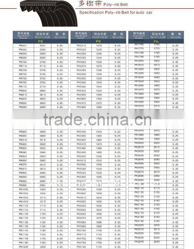 Good for high-speed and high power transmission OWBK Ribbed v belt can be used to the circuitous small-diameter pulley and will operate smoothly.