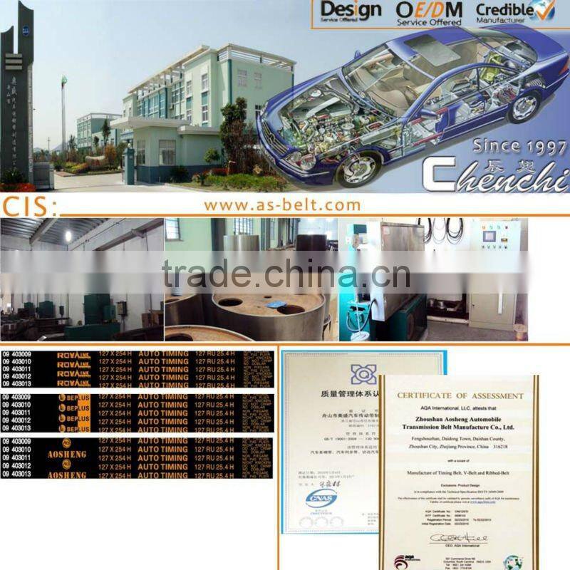 Zhoushan Aosheng Auto Transmission Belt Manufacturing Co., Ltd. is specialized in producing Chenchi(fly with wings fully open)brand neoprene synchronous belts,poly v-belts and other timing belts,which are used in imported cars.