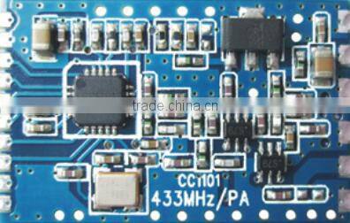 The configuration of CC1101 can be done with software SmartRF Studio7. Complete descriptions of the registers are given in the CC1101 datasheet. We can provide evaluation board and demo code to the customer to develop and evaluate the module’s capability.
