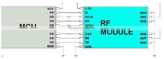 4. The MCU which don’t have integrated SPI interface can also control the module, use the normal I/O port to work like SPI timing to read and write. The SPI data rate is below 10MHz.