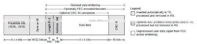 In addition, CC1110 supports fixed packet length protocols, variable packet length protocols and infinite packet length. Details refer to the CC1110 datasheet.