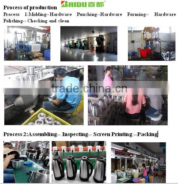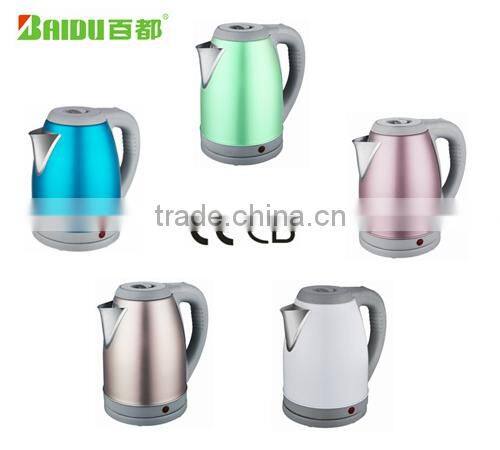Baidu Stainless Steel Material CB CE Certification New Design Plastic Handle Electric Kettle With Electric Heating Element