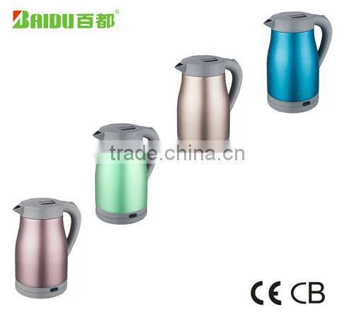 2015 New Year Gift Special Looking Resistant Heat Double Wall Stainless Steel Electric Kettle