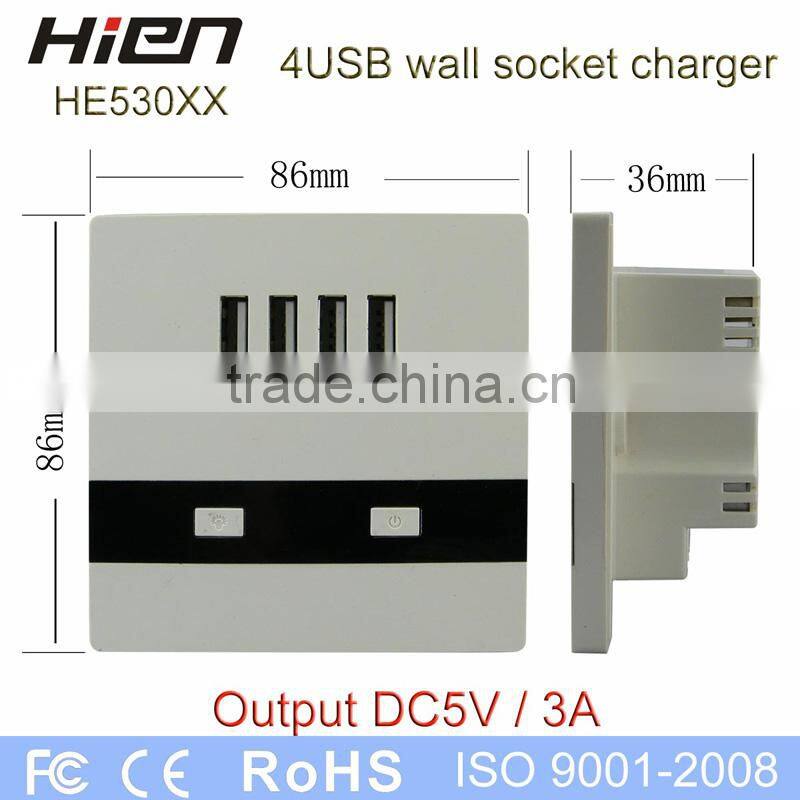 1. HE530USB wall sockets with large current and 4 USB ports, especially suit for the hotel /restaurant /coffee shop/airport/railway station/family/school/hospital and other pulbic place ;