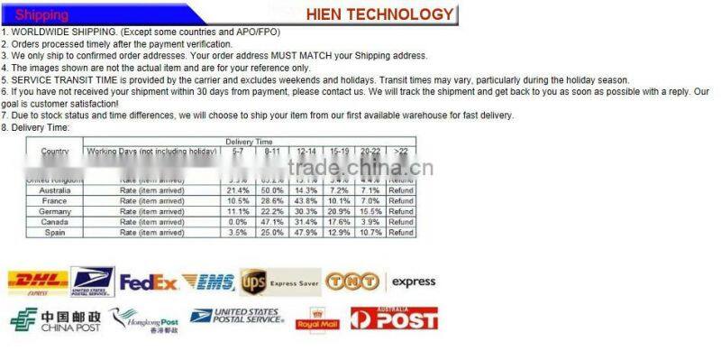 2)Delivery way: DHL, FEDEX, UPS, TNT, EMS and other courier available as required;