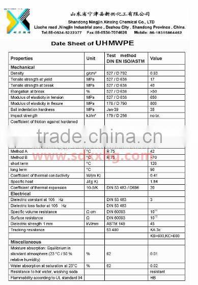 3.Property data sheet of UHMWPE prodcuts