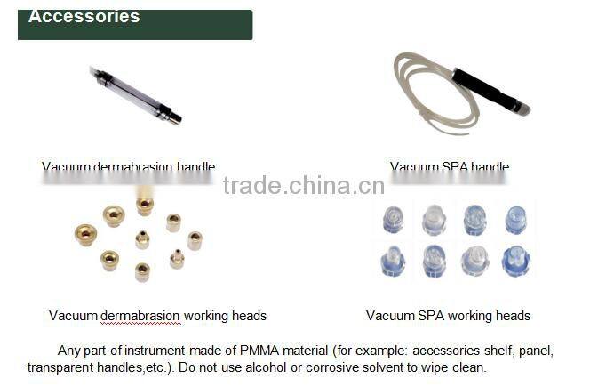 Water dermabrasion system thoroughly revolutionizes the traditional personal manual techniques to clean the skin. With the usage of intelligent control of vacuum negative pressure , and the perfect combination of skin care products and equipment, it can deeply clean peeling horniness, acnes, black heads and other dirts on epidermis or inside pores. Besides, it can promote deeply absorptionof nutritional ingredients, shrink pores, smooth skin, moisture skin and improve skin texture.