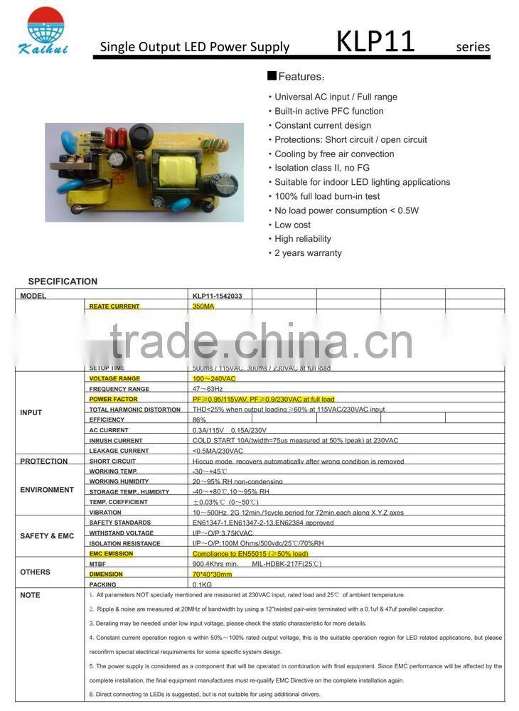 LED driver 15W costant current power supply 33~42V 350MA with PF 0.95