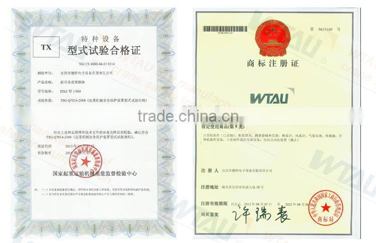Yichang WTAU Electronic Equipment Co. Ltd is a national high-tech enterprise which located in the “Hydropower capital”— Yichang. WTAU is committed to researching, developing and producing safety devices for crane cranes , automatic monitoring control systems , etc. WTAU puts the principle “make sure the lifting equipments are operated safely and reliably” as our duty and takes the high-tech as the core. WTAU has awarded many patents and major achievements of science and technology. The Load Moment Indicator, Overload Indicator, Anemometer , Wind Speed Sensor, Limit Switches ,etc. which are researched independently are widely used in electrical, chemical, steel, metallurgy, construction, ports, shipping and other industries.