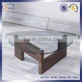 Oval Glass Top Wooden Leg Coffee Table Made in China
