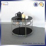 ROUND STAINLESS BLACK MORDEN ART TEMPERED GLASS COFFEE TABLE DOUBLE LAYER GLASS FUNKY CLASSIC TABLE