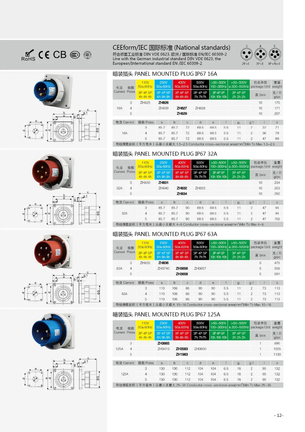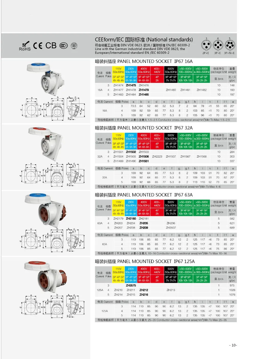 CEE Panel Mounted industrial plug socket IP44 IP67