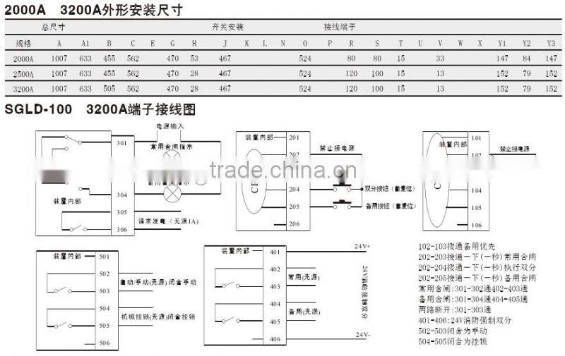 The series SGLD automatic transfer switch equipment (ATSE) is such a new product that integrates switch and logic control to truly realize the mechatronics; it applies at the distribution device of rated insulation voltage up to 1000V and rated frequency of 50Hz and rated voltage up to 660V and conventional heat current up to 3200A. to automatically transfer between the master power and the backup one in the power supply system or the two load devices and perform the secure isolation, wide used at the important occasions, e.g. hospital,marketplace,bank,highrise building,coal mine,communication department,iron mine,expressway, airport, product line and military facilities where the power interruption is taboo.