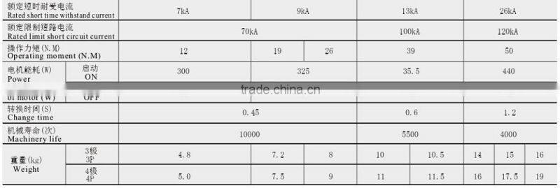 The switch equipment could perform the full automatic operation, compulsively setting "0" remote control and emergency hand operation, moreover, it could perform detection and protection for phase lack, detection and protection for undervoltage, detection and protection for frequency, delay adjustment and electrical & mechanical interlock, etc.