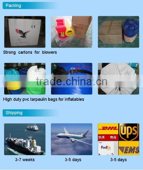 Packaging:PVC tarpaulin for inflatables , carton for blower