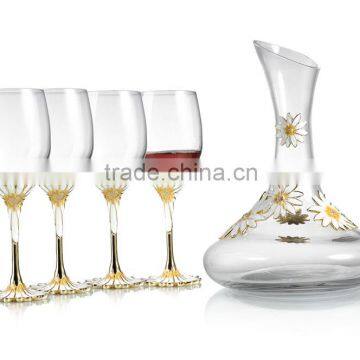 The goblet is made of high-end crystal , reflecting glittering luster . The decanter is made of crystal glass , matching pure daisy  and showing great taste .