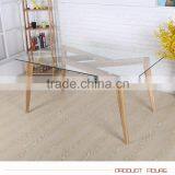 China Supplier Industrial Furniture Glass Dining Table With Wooden Legs