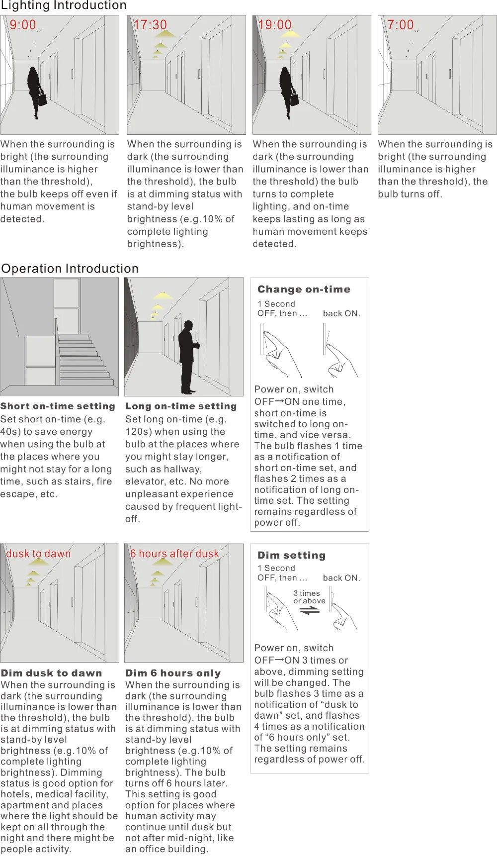 Motion Sensor Light Bulb With Dimming Setting (Model: L3 / 5W )
