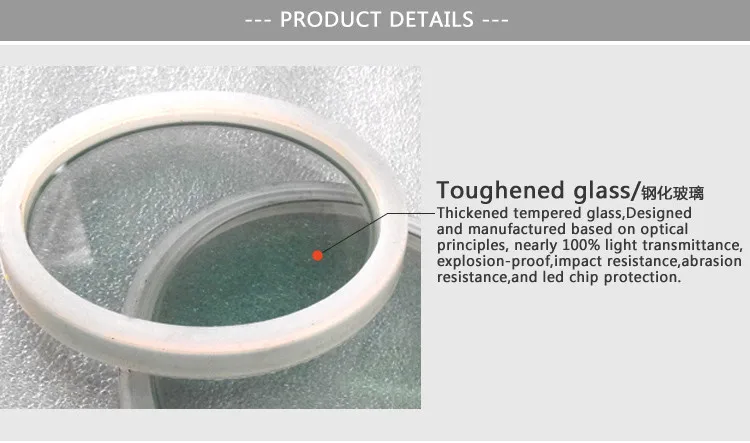 8MM thickened tempered glass.The design and produce process based on optical principles, nearly 100% light transmittance. Exposion-proof, impact resistance, abrasion resistance , and led chip protection.