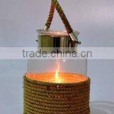 Glass Hurricane With Rope Handle Pillar Candle Holder for Home Decoration Ca012