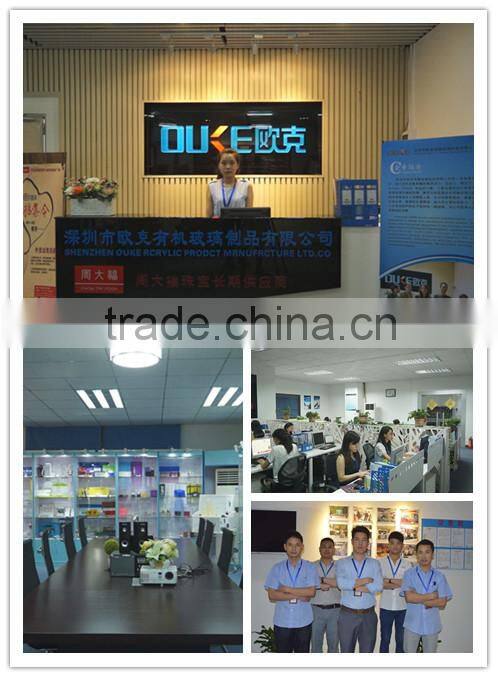 Shenzhen OUKE acrylic product Co., Ltd is a company specializing in designing and producing all kinds of acrylic products .Our company was established in 2009, We would like to provide more satisfactory products and sincere service to our customers with our professionalism and tireless efforts.