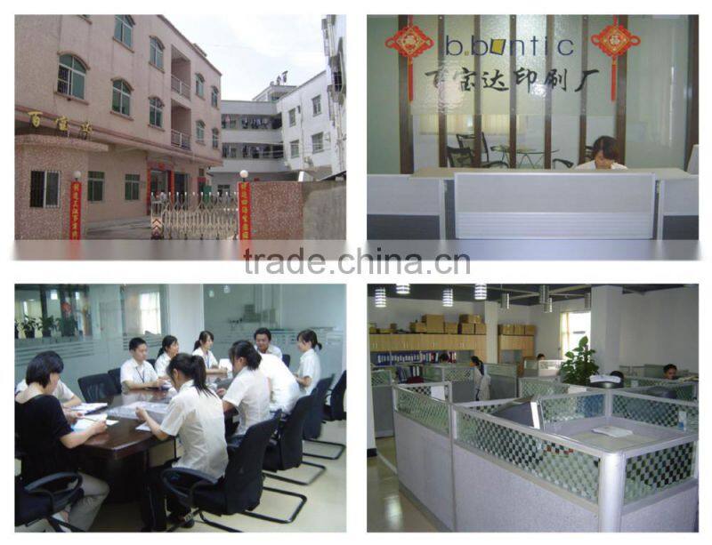 B.Bontic Printing factory, Dongguan was founded on 2003 with 2000 sq. meters and well equipped with the latest and most advanced printing equipment. Those automated machinery highly enhanced our production capacity and the quality of products. The location of our factory is also very easy to access, which is just 15 mins apart from Changping Railway Station and keep highway in GD province. We keeps provide high quality service of supply chain to our customer and the fee back also very positive.