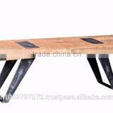 Large Bench With Mango Wood Top And Iron Metal Base