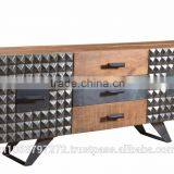 Buffet 2 Doors & 3 Drawers With Mango Wood Top And Iron Metal Base
