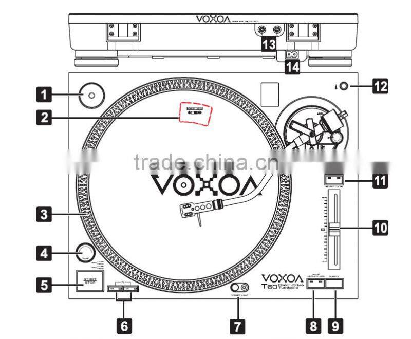 VOXOA T60 Professional Wholesale DJ Audio Turntable Adjustable Pitch Control With Upper Direct Drive