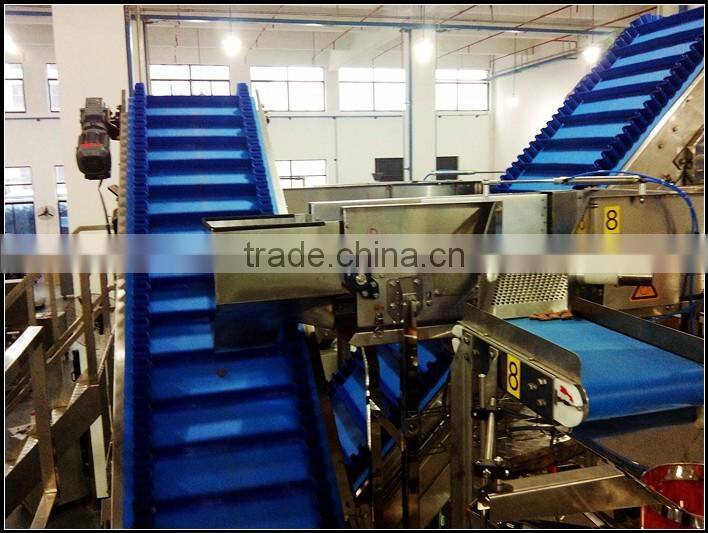 The Conveyor is very well suited for a broad range of free flowing products in the food, agriculture, pharmaceutical, cosmetic, chemical industry, .such as snack foods, frozen foods, vegetales, fruits, confectionary. Chemicals and other granules.