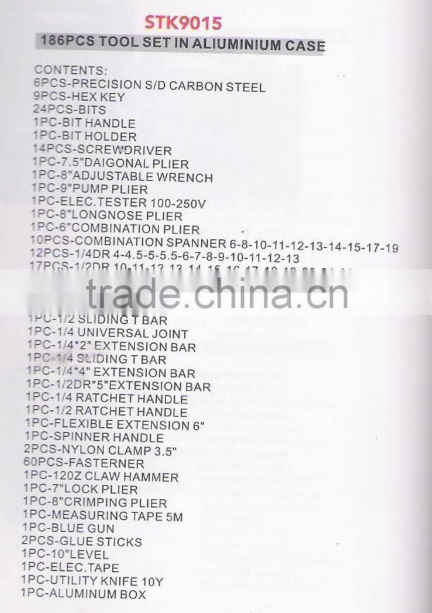 Home > Tools & Hardware > Hand Tools > Hand Tool Set > 186PCS TOOL SET IN ALIUMINIUM CASE