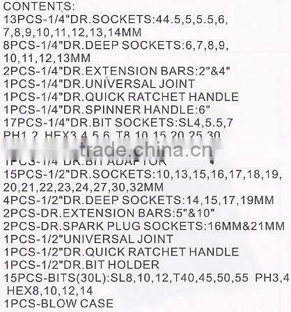78 PCS Socket Set(1/4" &1/2")US$ 28 - 38MOQ: 10 Sets