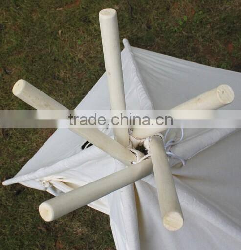 This play teepee is made out of medium weight 100% cotton canvas. All seams, raw fabric edges and openings are reinforced for safety, durability and years of play.