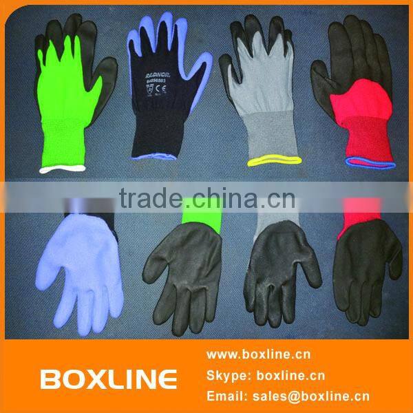 Placing the finished dipping gloves on the rack.