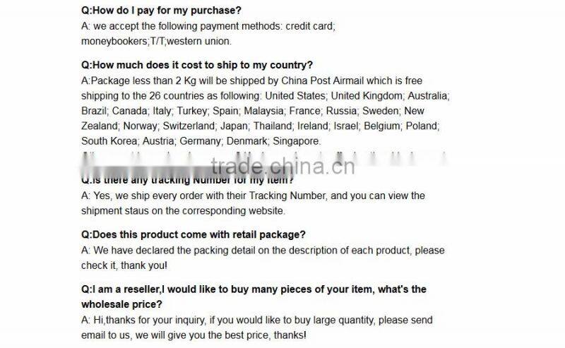 5.We have strict QC quality control, have 99% good reputation feedback.