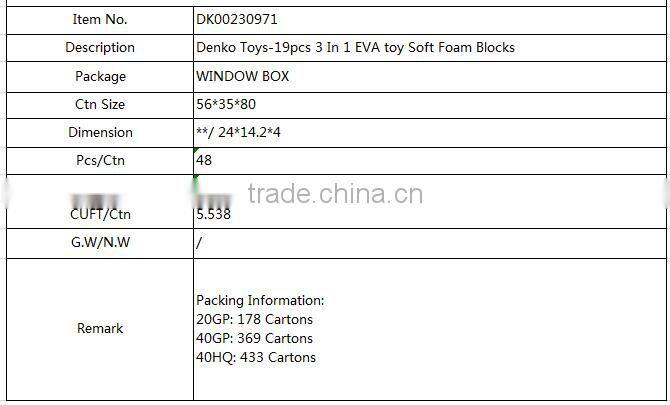 Denko Toys-19pcs 3 In 1 EVA toy Soft Foam Blocks,welcome your inquiry~