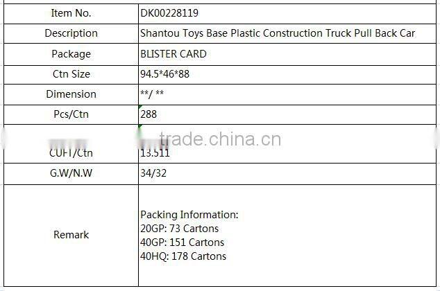 Shantou Toys Base Plastic Construction Truck Pull Back Car