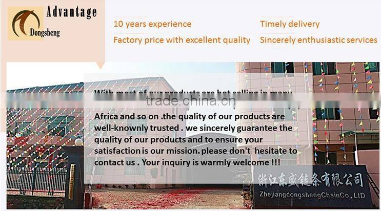 DongSheng is specialized in producing all kinds of standard and non-standard chains, e.g. A or B series chains, automobile chains, stainless steel chains, combine harvester chains, heavy-duty cranked link transmission chains, stereo garage chains and maintenance-free chains etc.