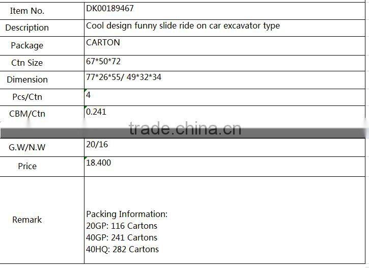 Cool Design Funny Slide Ride on Car Excavator Type