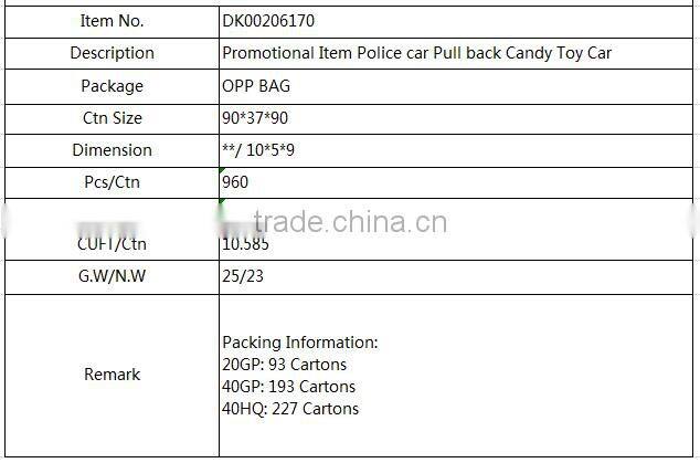 Promotional Item Police car Pull back Candy Toy Car,welcome your inquiry~