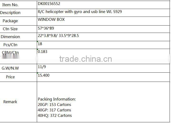 3. DESCRIPTION:R/C helicopter with gyro and usb line WL S929