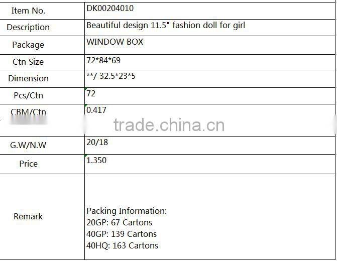3. DESCRIPTION:Beautiful design 11.5" fashion doll for girl