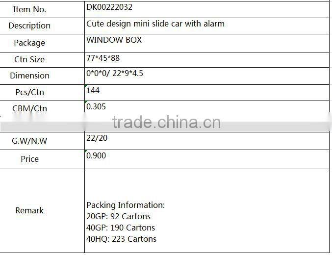 3. DESCRIPTION: Cute design mini slide car with alarm