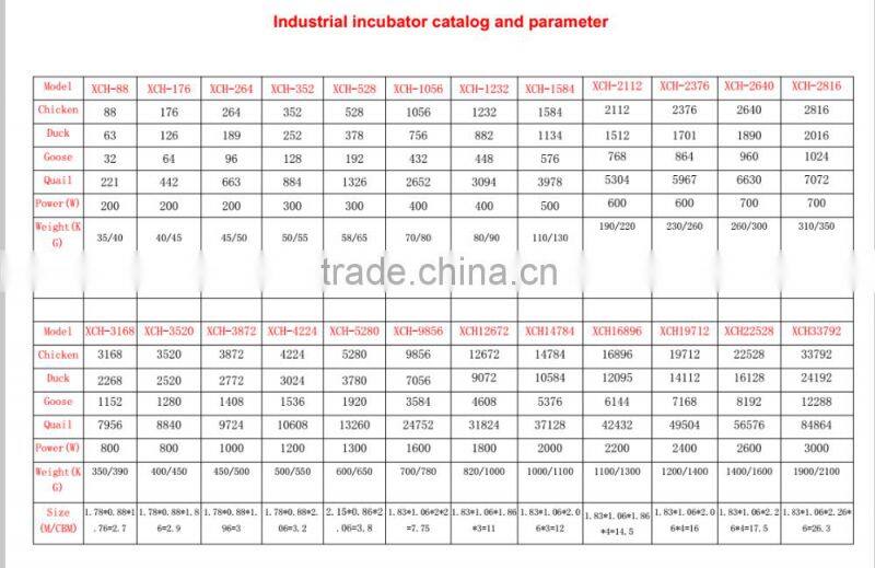 This is our XCH -1056 egg incubator , it's can hatch 1056 pcs chicken eggs 756 pcs duck egg ,432 pcs goose or 2652 pcs quail eggs .