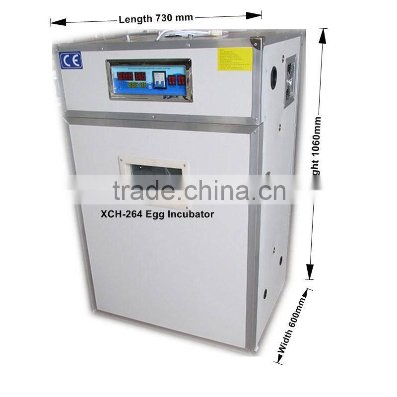 This is our XCH -264 egg incubator , it's can hatch 264 pcs chicken eggs 189 pcs duck egg ,96 pcs goose or 663 pcs quail eggs .