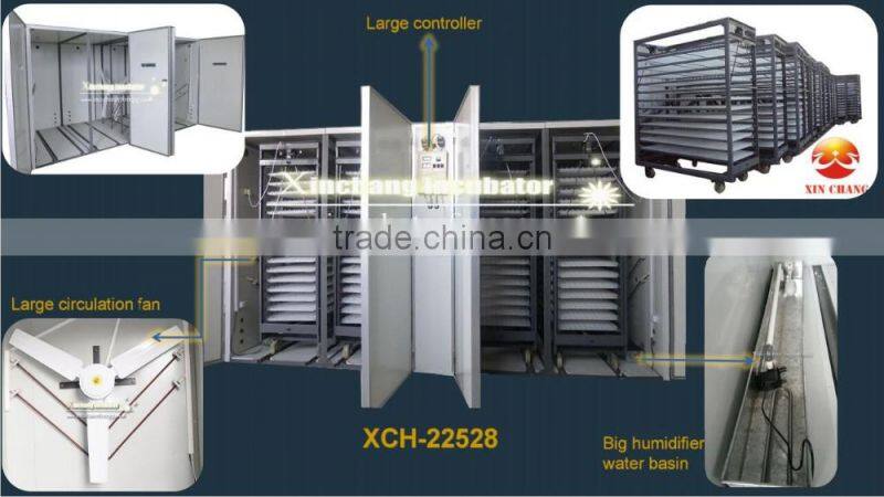 This is our XCH -22528 egg incubator , it's can hatch 22528 pcs chicken eggs 16128 pcs duck egg ,8192 pcs goose or 56576 pcs quail eggs .